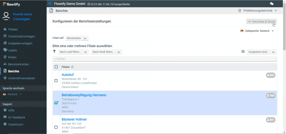 Berichte dienen dazu, dem Prüfer oder Filialleiter die aktuelle Situation einzelner oder mehrerer Betriebe widerzuspiegeln und die Performance aufzuzeigen.