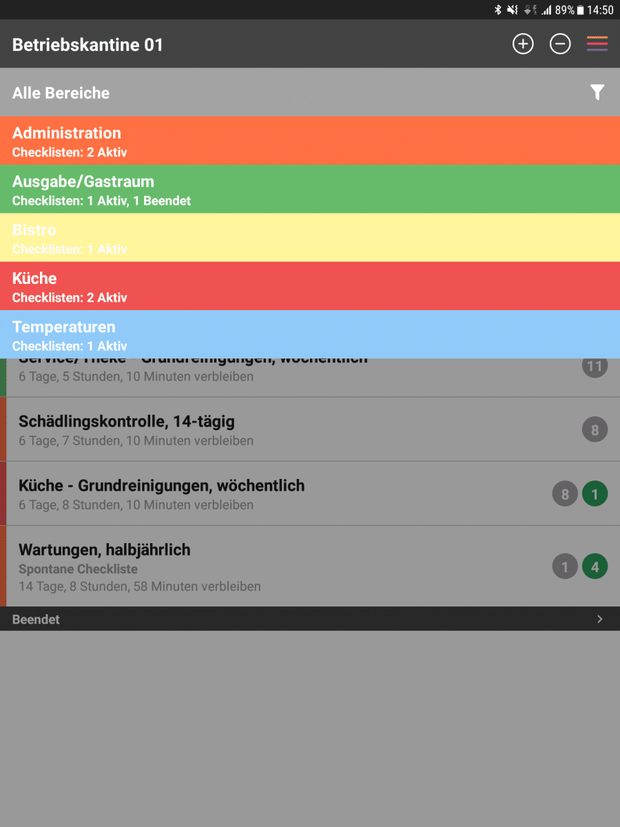 - Checklisten nach Bereichen filtern