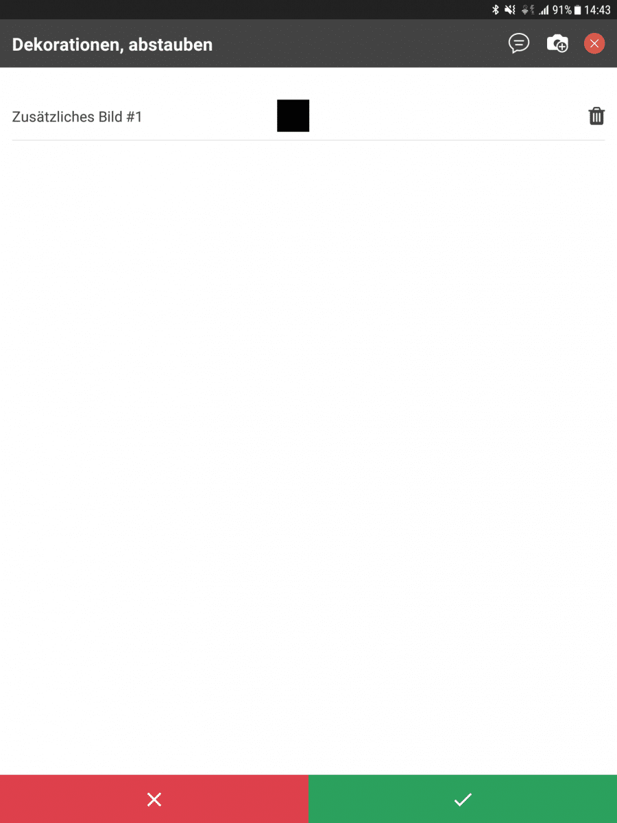 Beachten Sie: Sollte es sich um eine Aufgabe handeln, bei der eine Eingabe erforderlich ist (bspw. Temperaturangabe), so muss zuerst die Eingabe getätigt werden, bevor das Kamera-Symbol über die obere Menüleiste zugänglich ist.